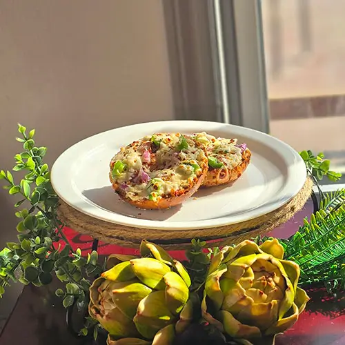 $5.00Warm, toasted bread layered with garlic butter and colourful veggies, baked until golden and fragrant.